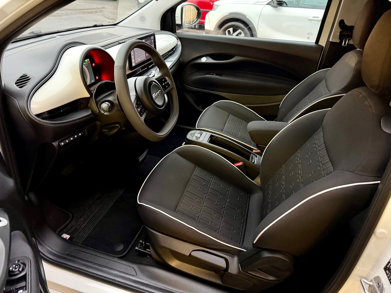 godt udstyret 500e cabrio, læderrat, sædevarme, fartpilot, fjernb. centrallås, apple carplay, håndfrit til mobil, dab radio, navigation, android auto, musikstreaming via bluetooth, armlæn, aux tilslutning, bakkamera, parkeringssensor (for), parkeringssensor (bag), esp, isofix, dæktryksmåler, 6 airbags, udv. temp. måler, el-ruder, fuldaut. klima, aircondition, splitbagsæde, højdejust. førersæde, digitalt cockpit, el-sidespejle, type-2 ladekabelFinansiering